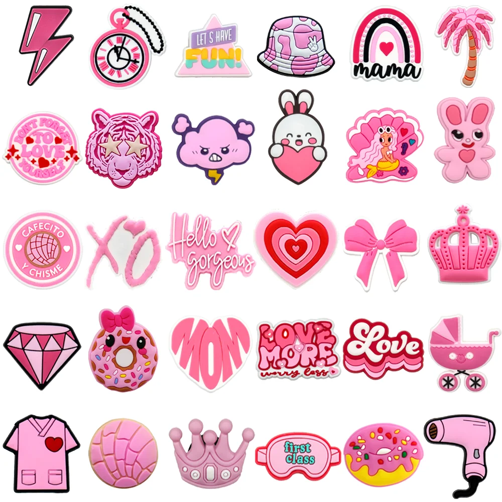 1/30PCS Pink Style Shoe Charms for Girls,Pink Bunny Heart Pin Buckle Accessories