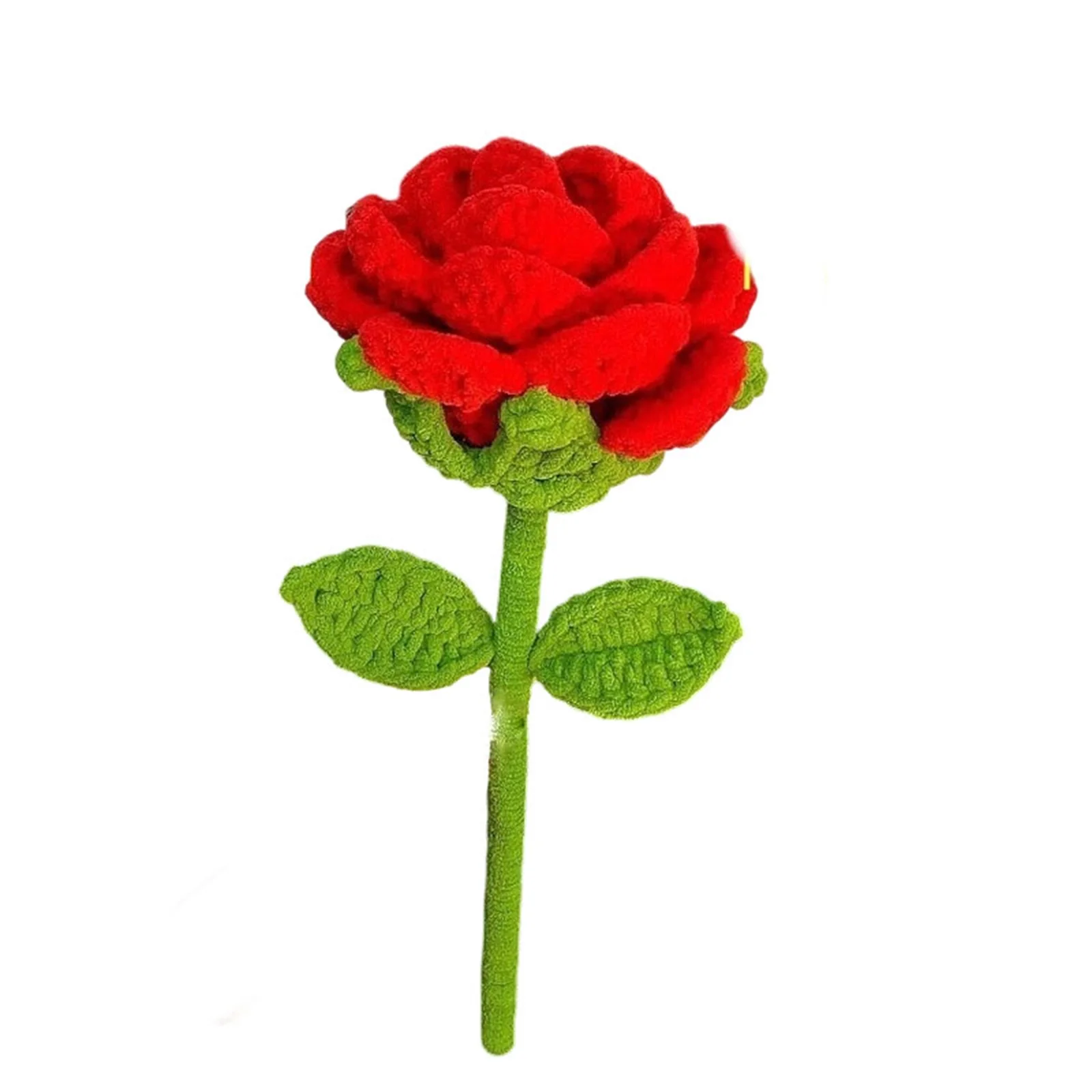 Material and Craftsmanship: The main body is woven with red and green yarn using crochet techniques. The petal texture is and three-dimensional, and the stitches the stem and leaves are fine, presenting the texture and temperature of handmade products.