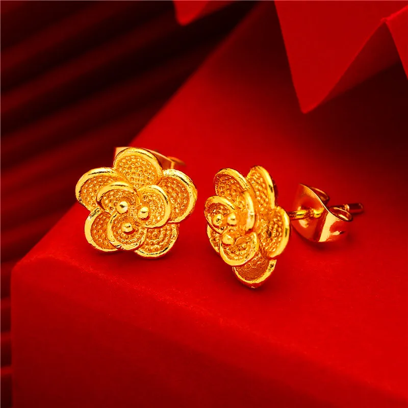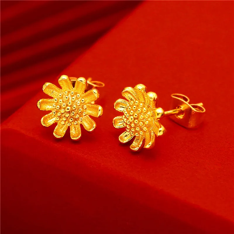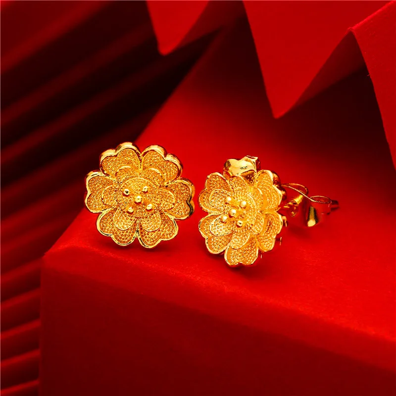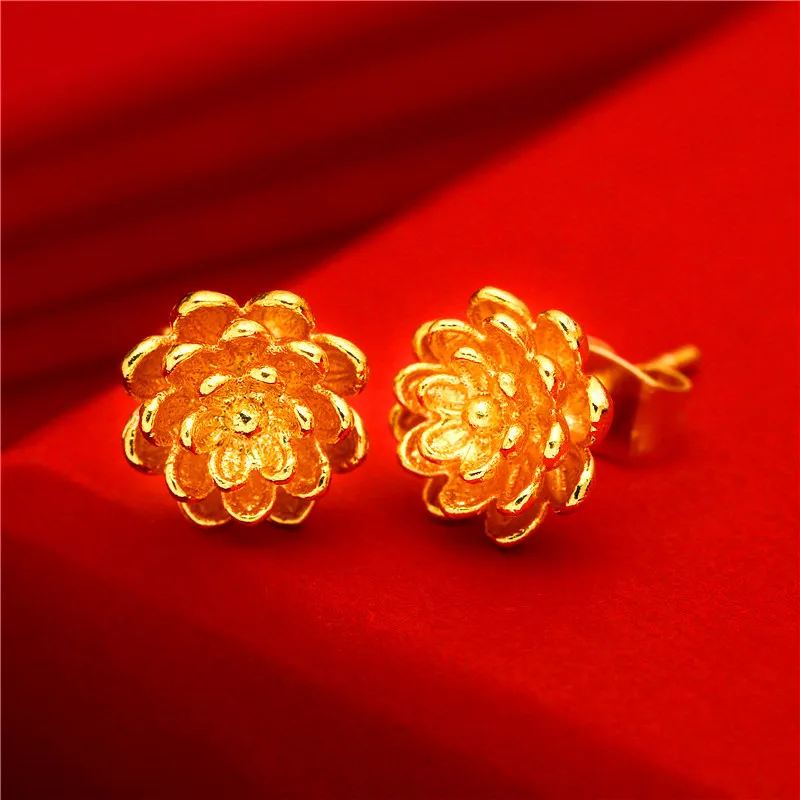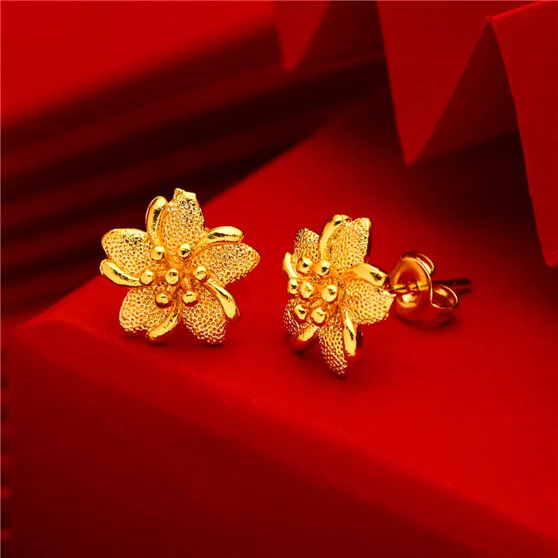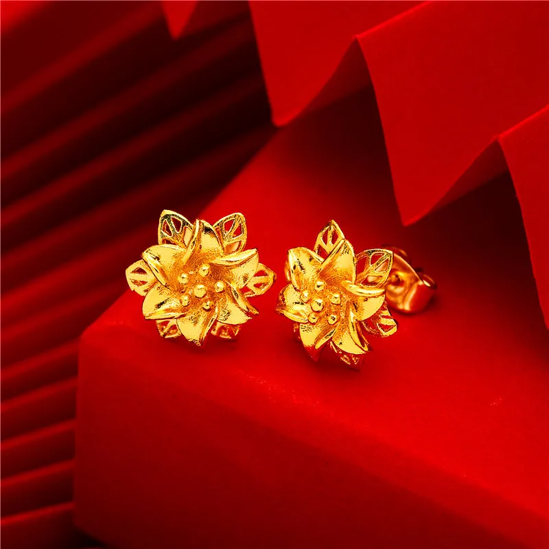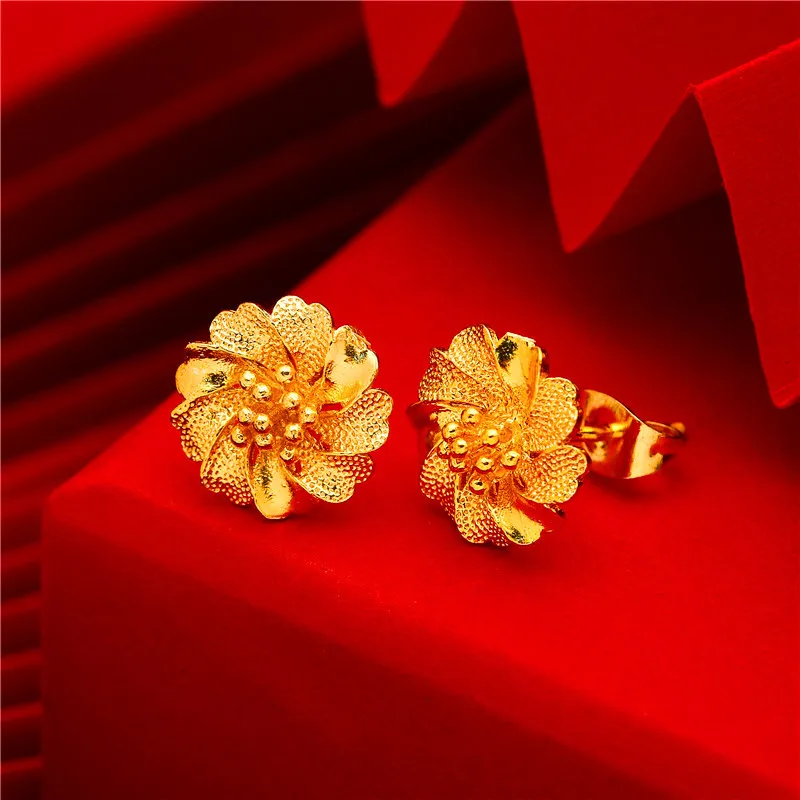 ANIID Flower Earrings 24K Gold Color Stud Earrings for Women Nigerian Designer E