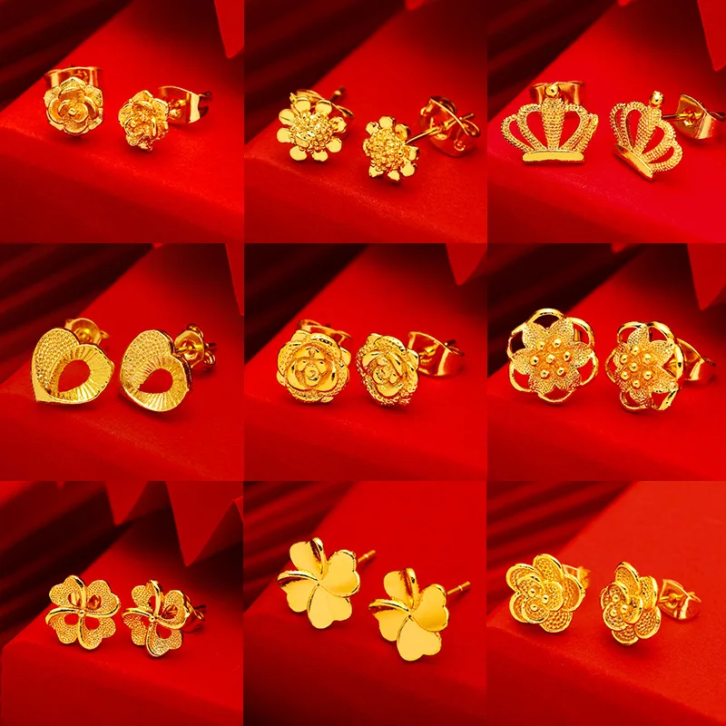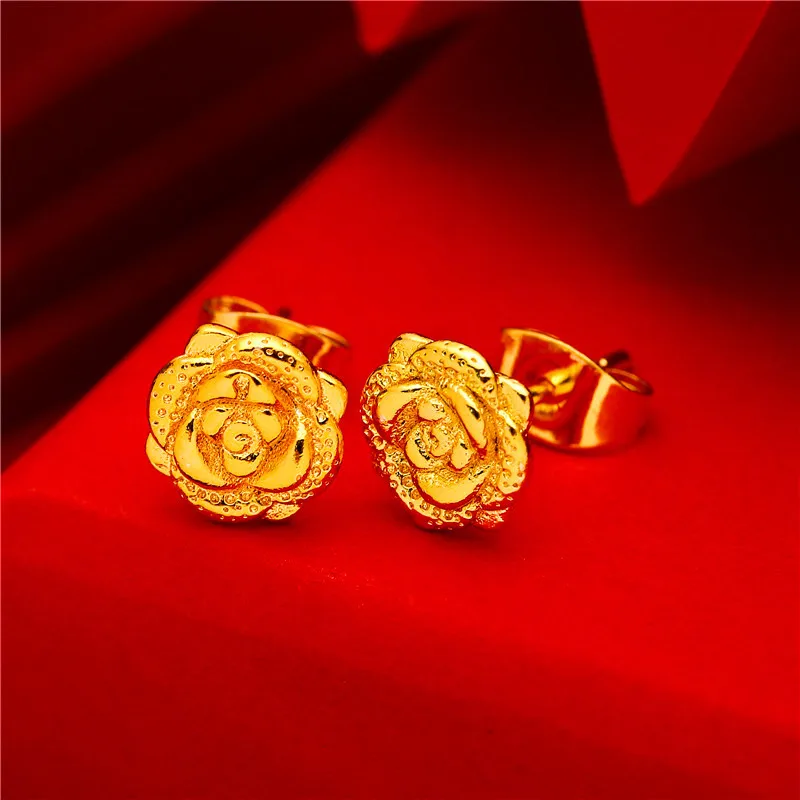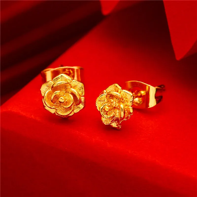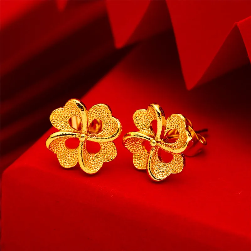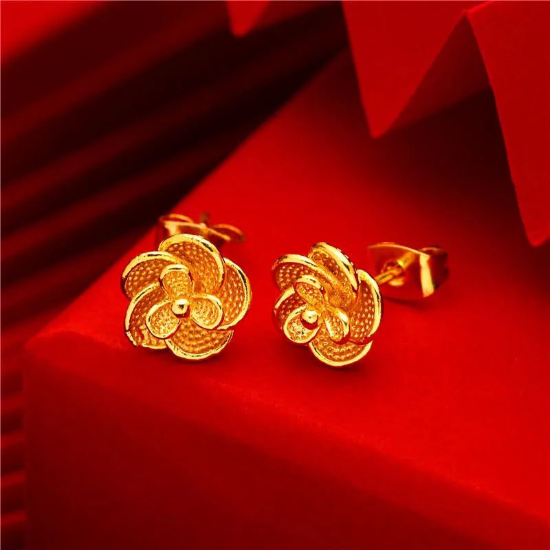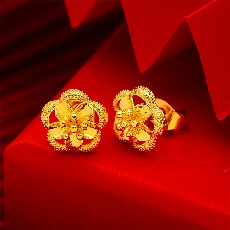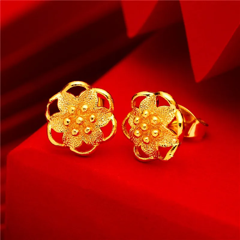 ANIID Flower Earrings 24K Gold Color Stud Earrings for Women Nigerian Designer E