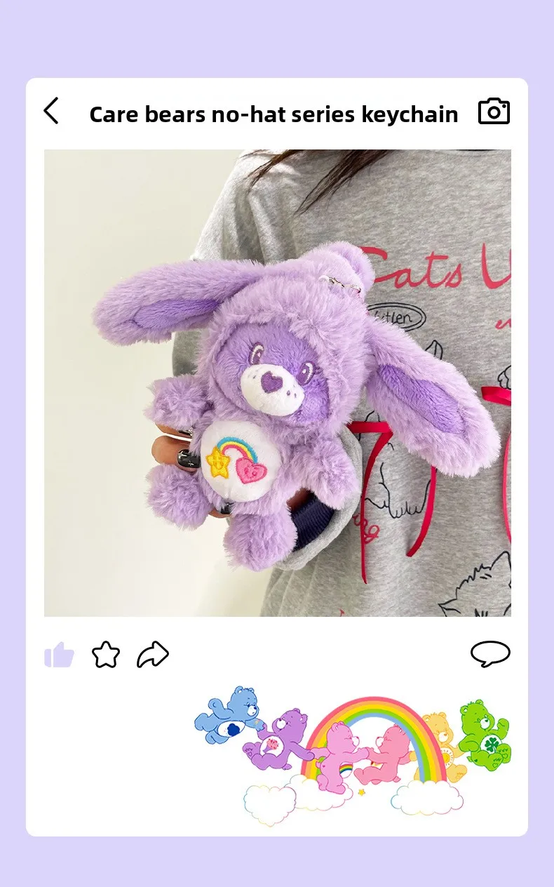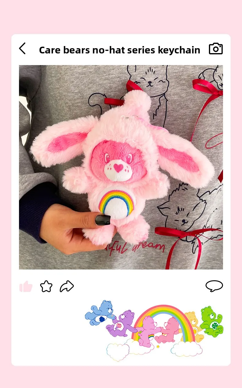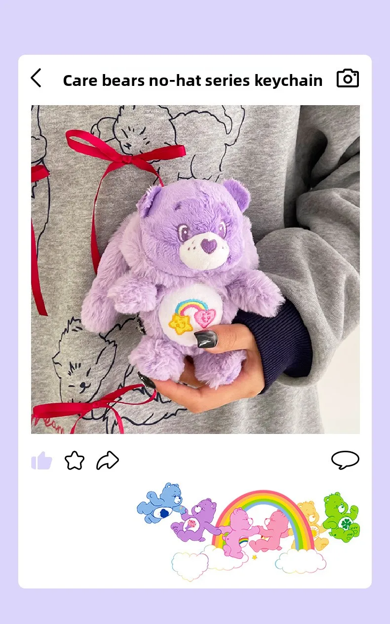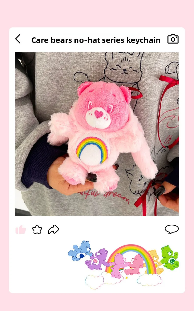 1.Designed for both boys and girls, these charming stuffed keyrings feature the beloved Care Bears characters in soft, huggable plush material.