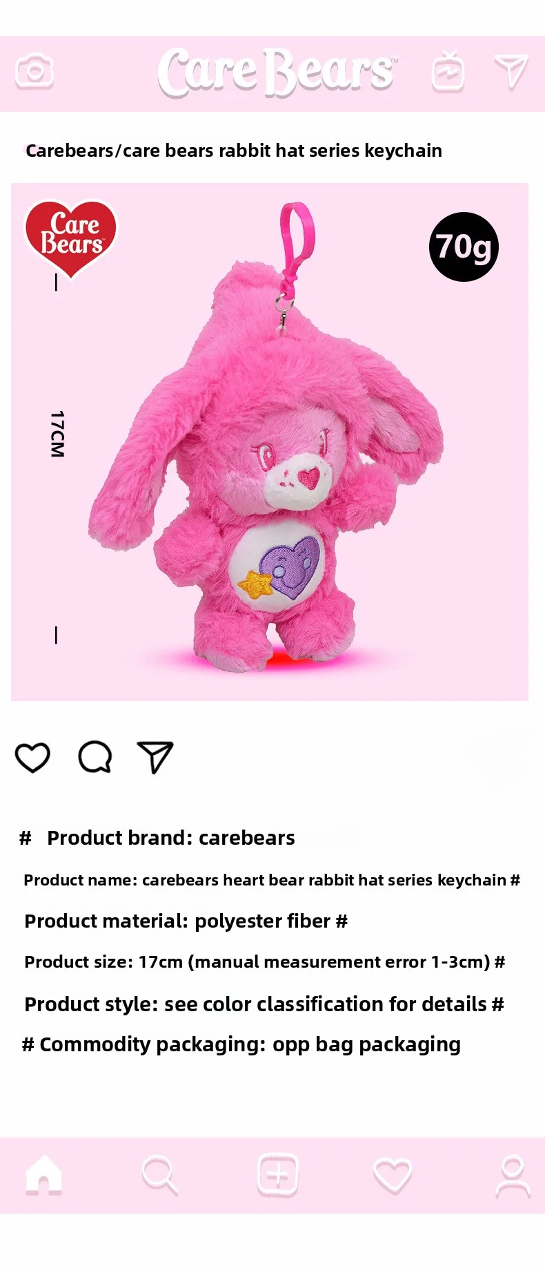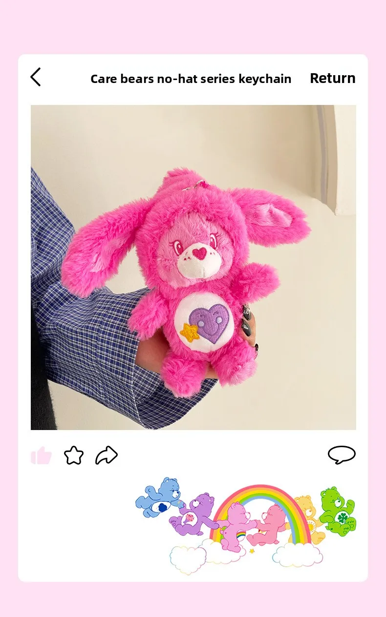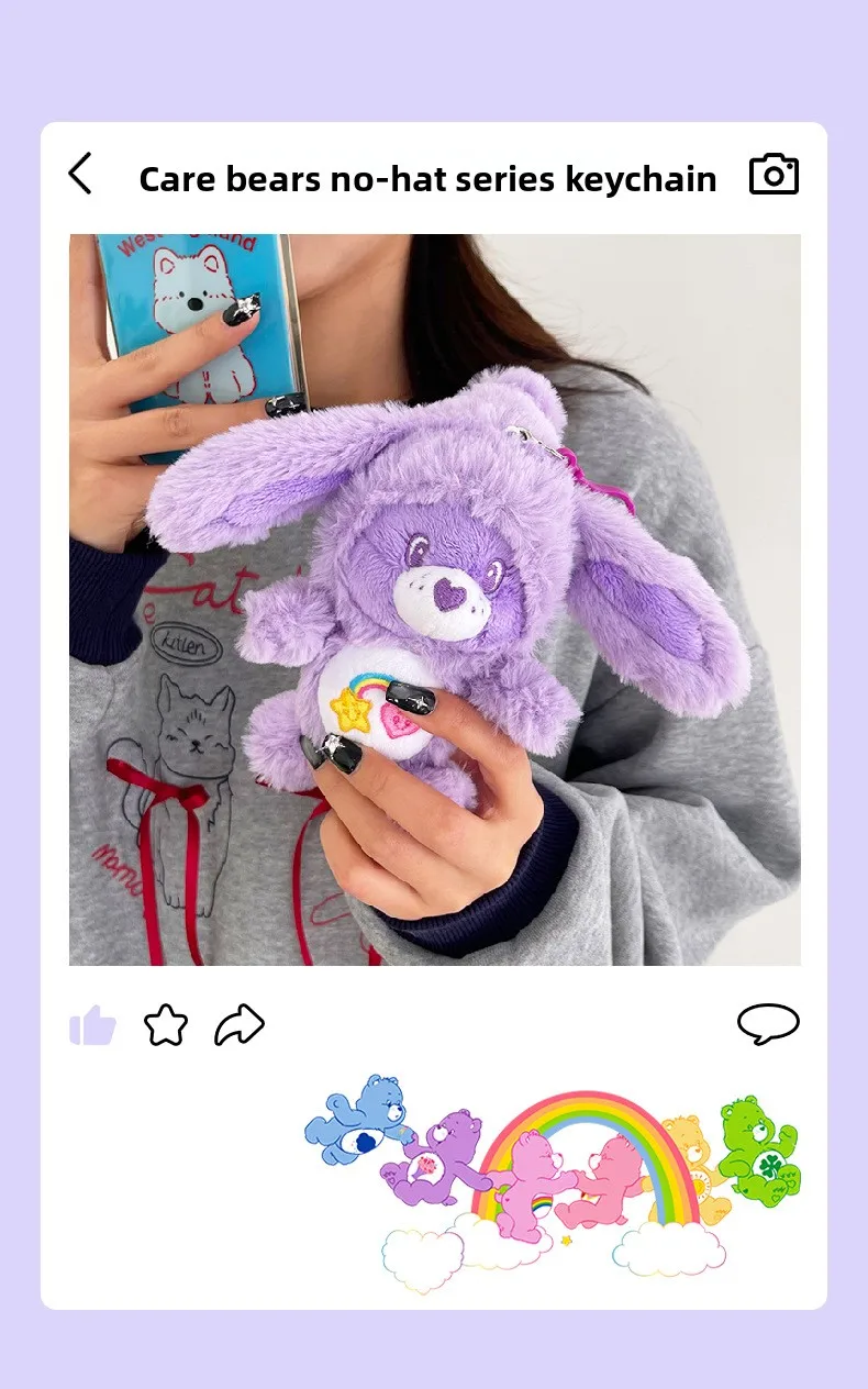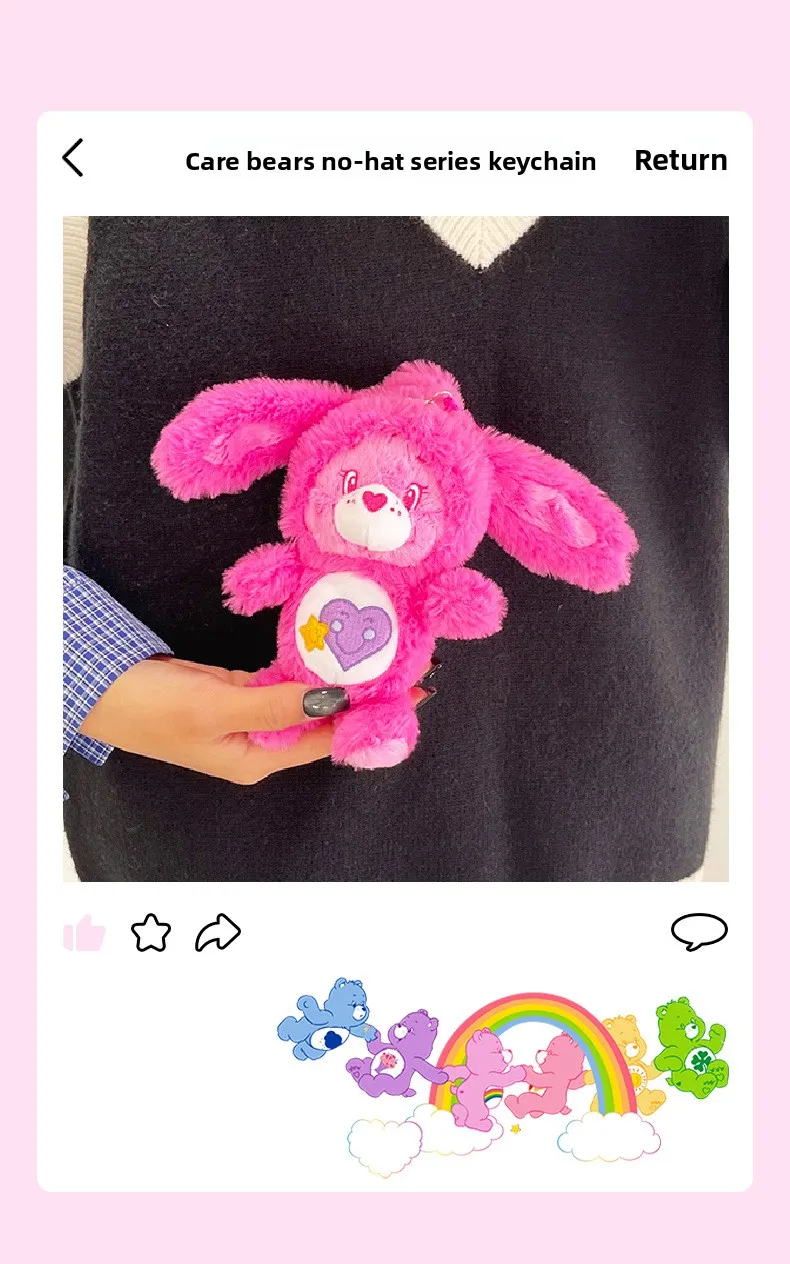 1.Designed for both boys and girls, these charming stuffed keyrings feature the beloved Care Bears characters in soft, huggable plush material.