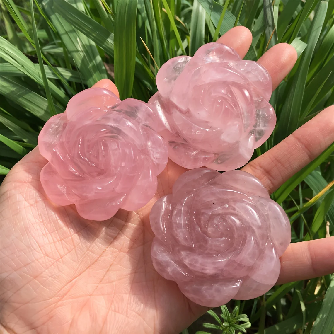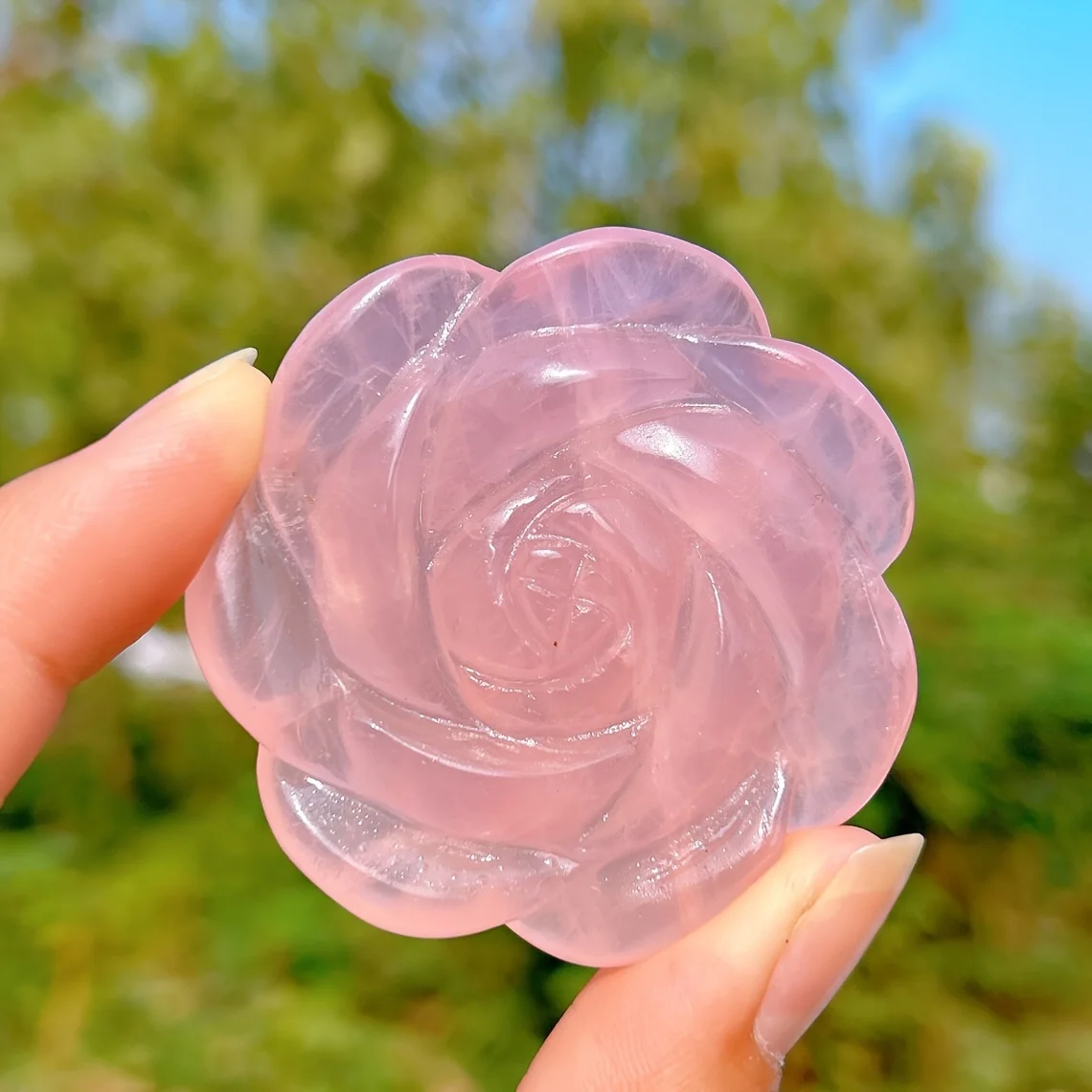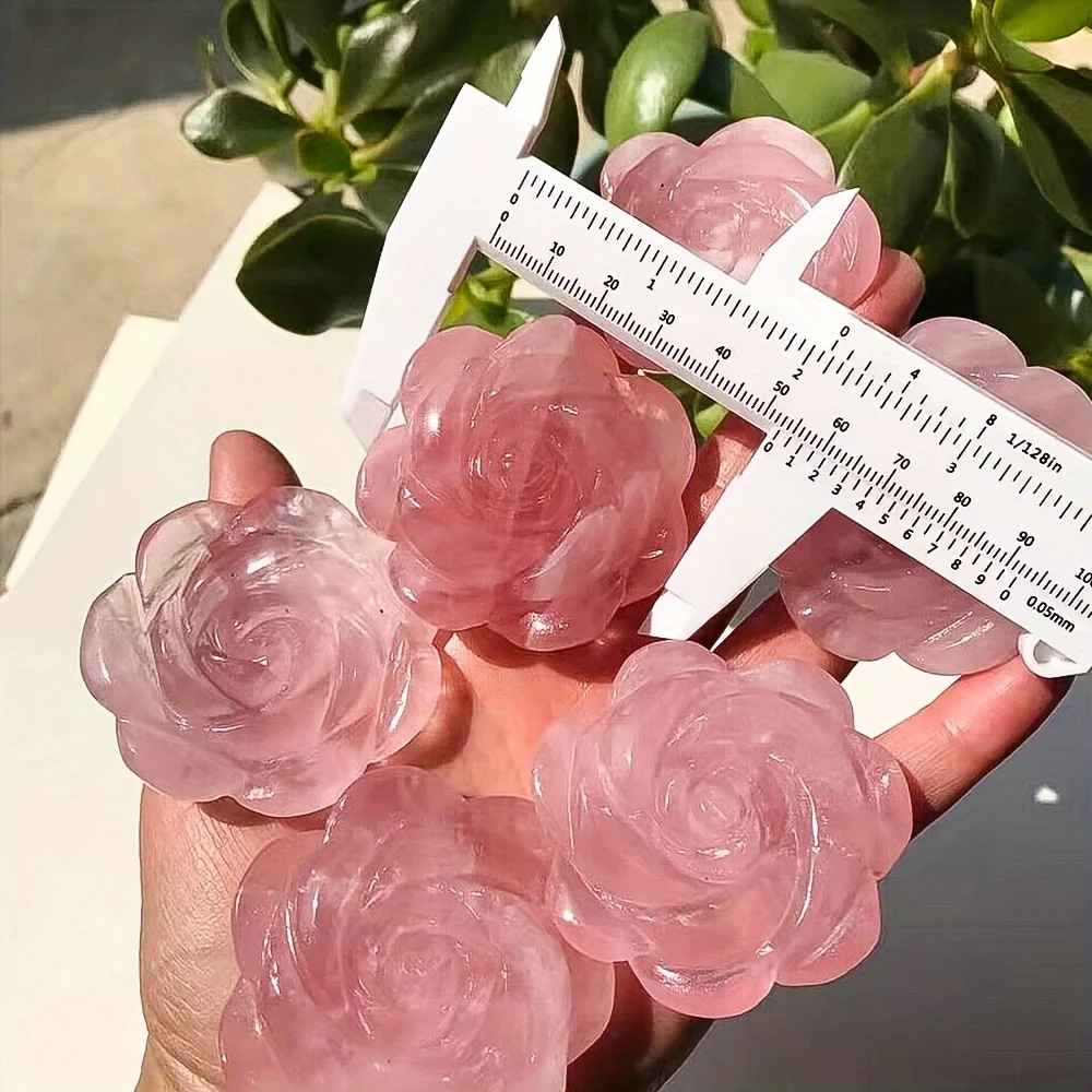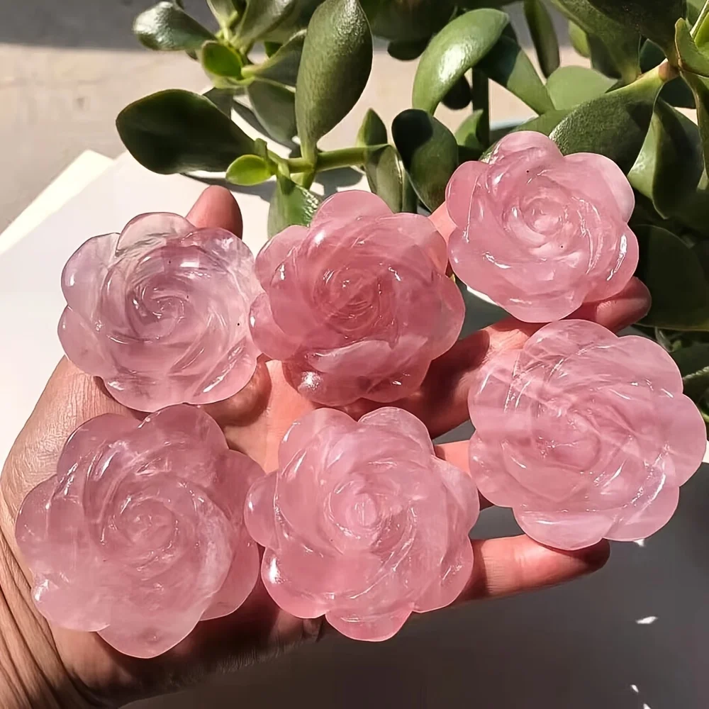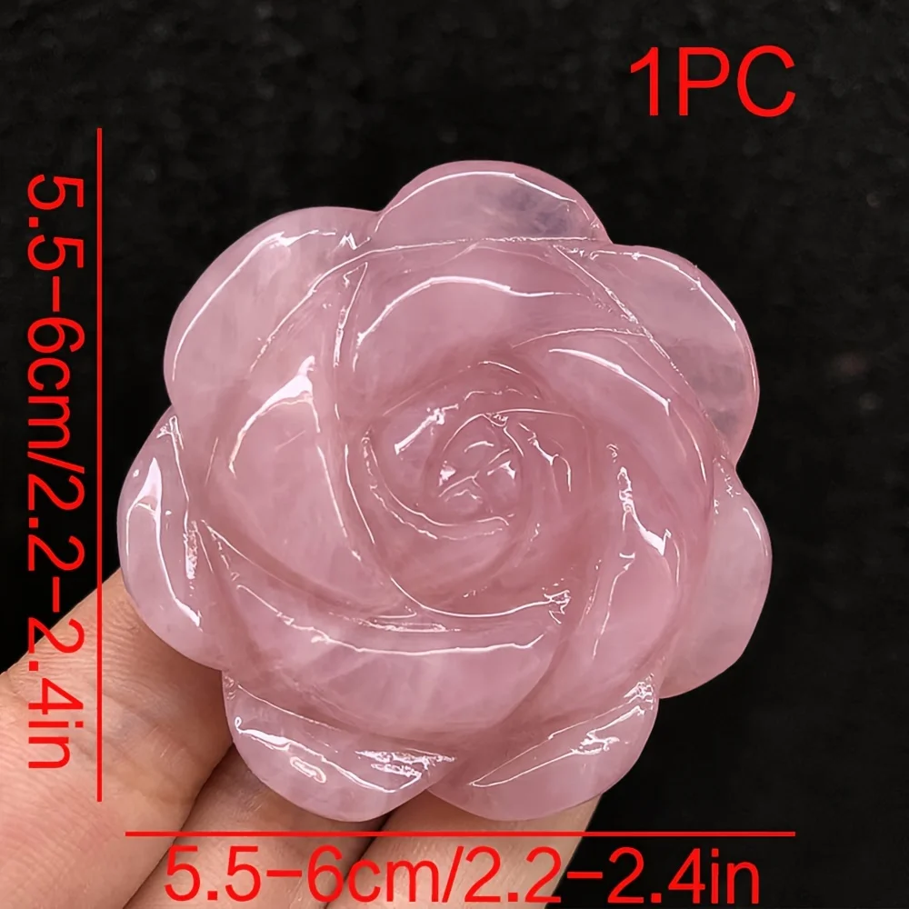 Hand-Carved Rose Quartz Crystal Figurine - Natural Gemstone Flower Decor for DIY