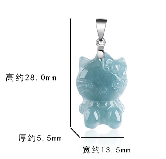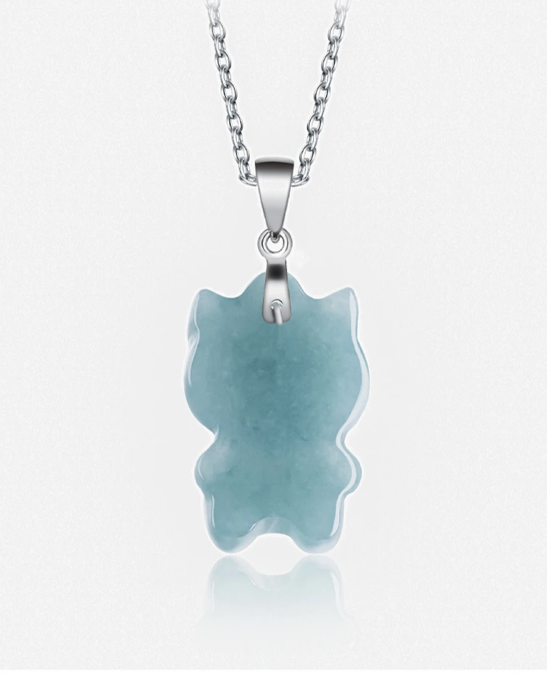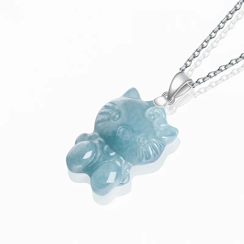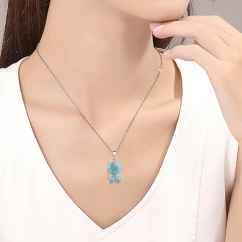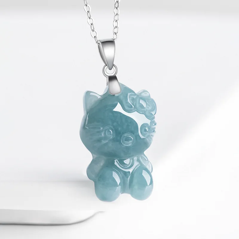 Jiale/ Hand-carved/925 Silver Inlaid Natural Blue Water Cartoon Cat Jade Necklac