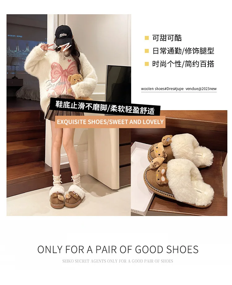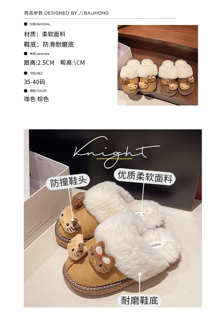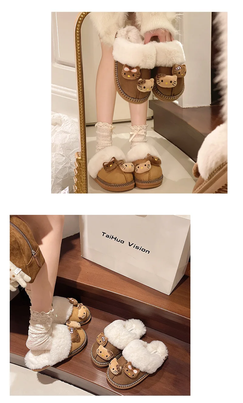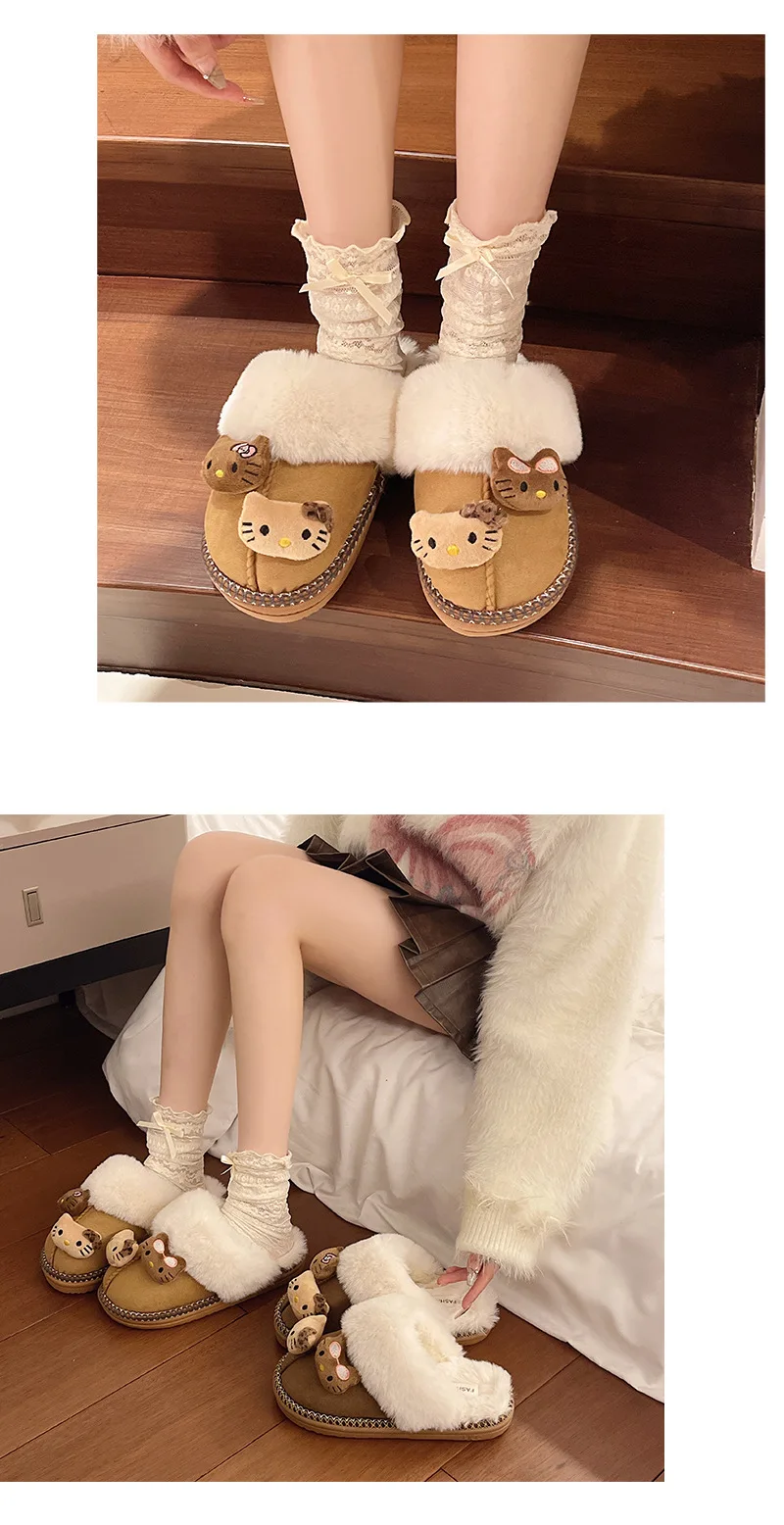 Kawaii Sanrio Hello Kitty Plush Doll Non-Slip Slippers Kawaii Warm Home Shoes Cu