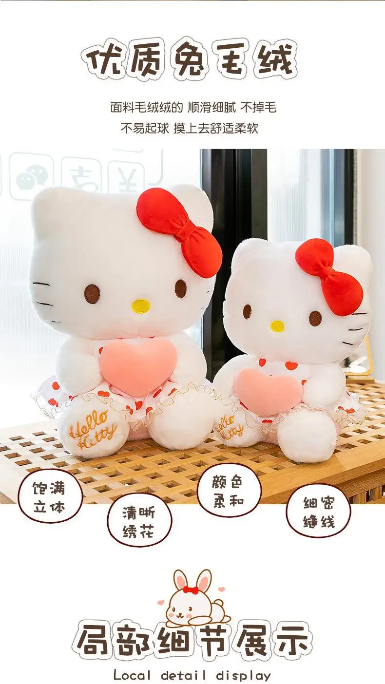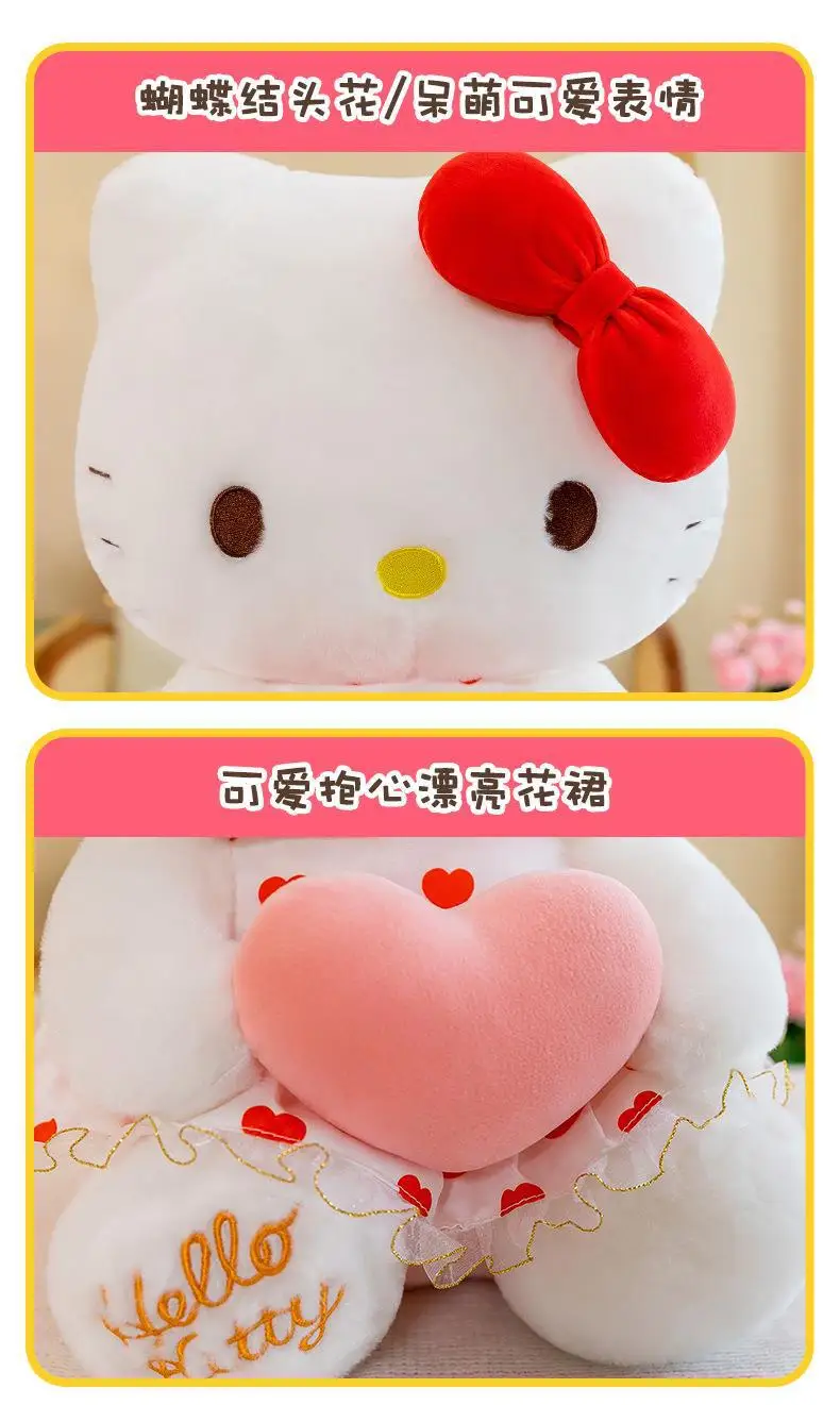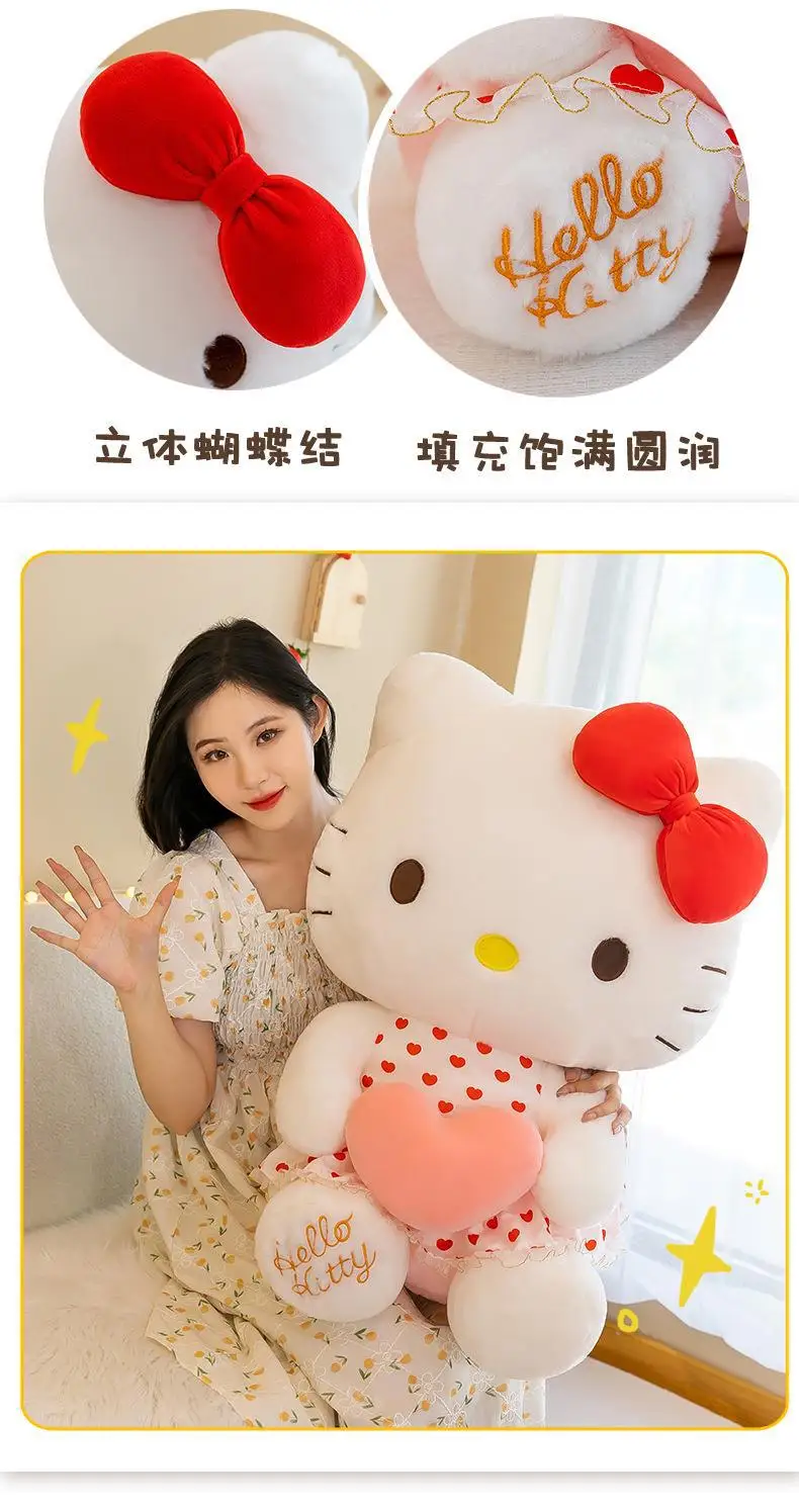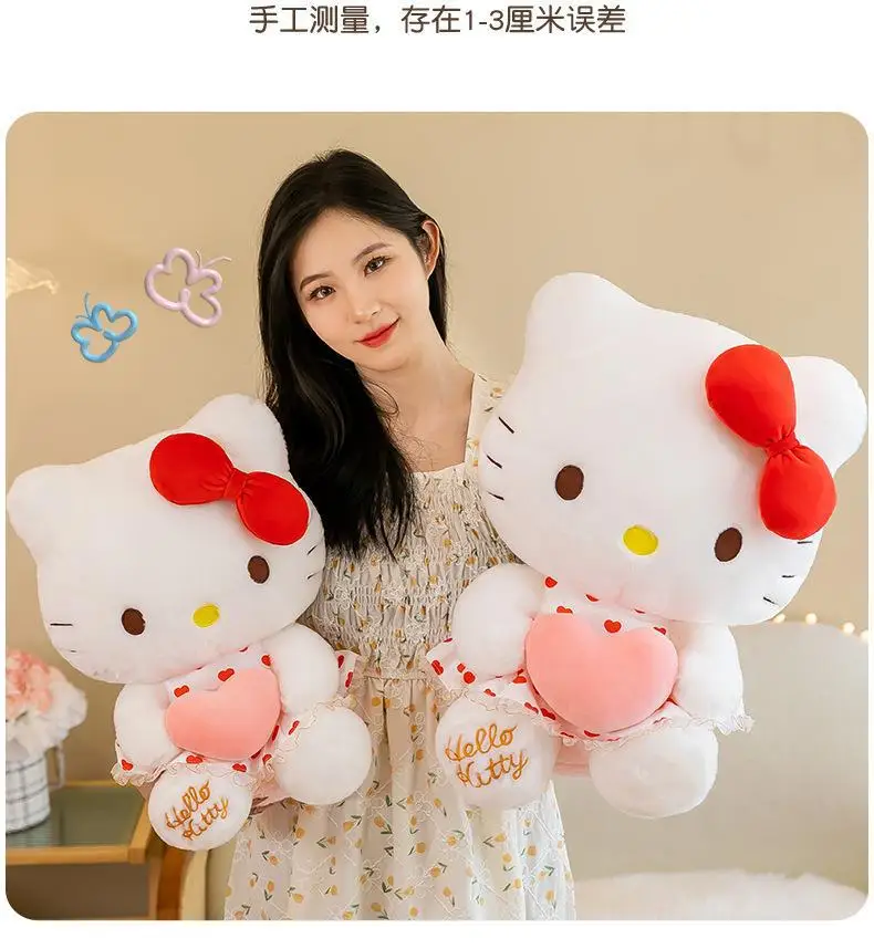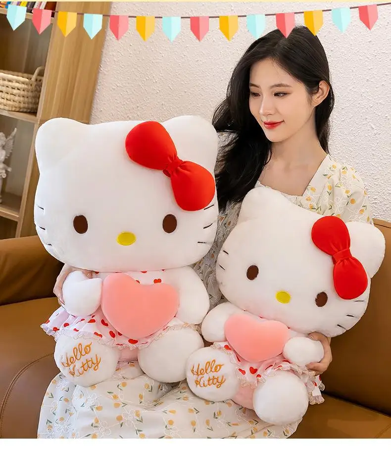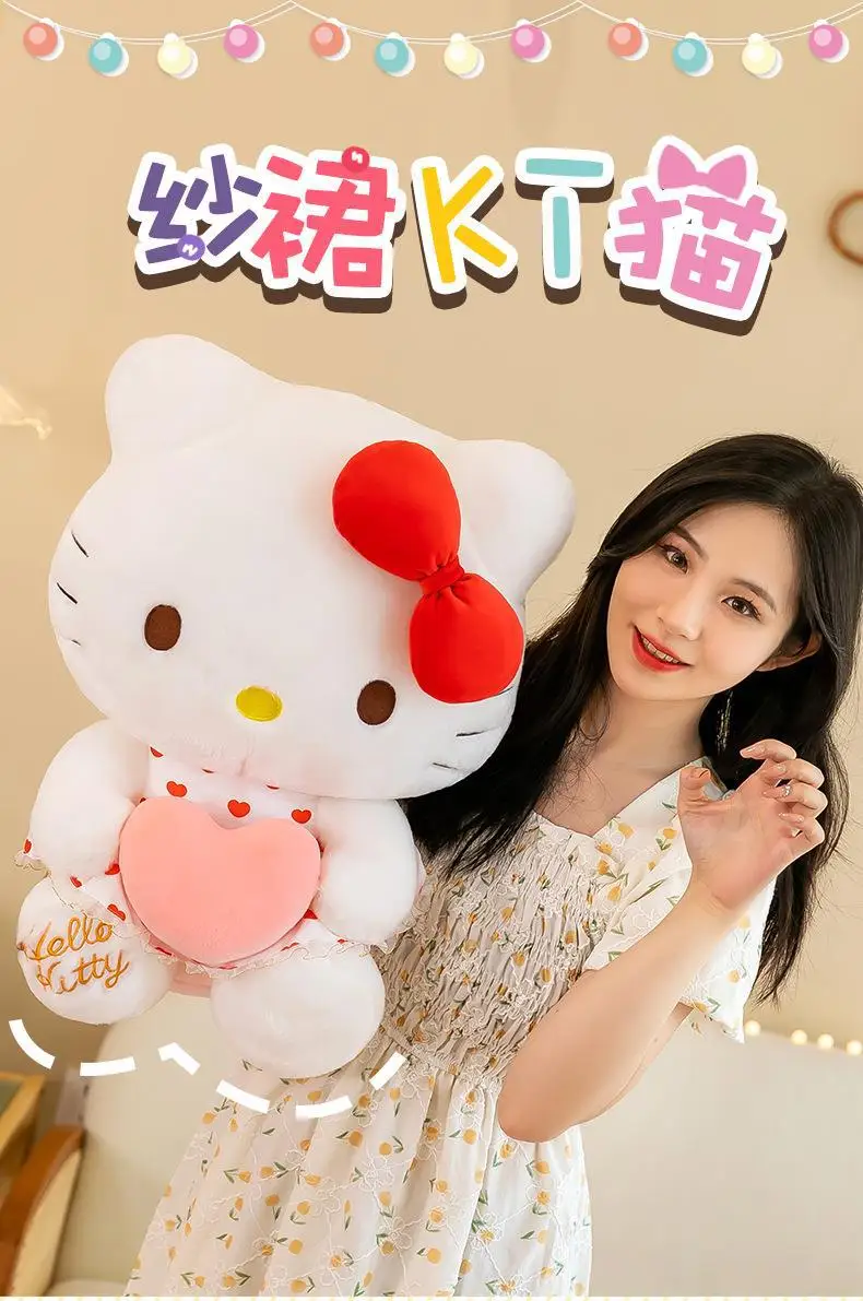 New Sanrio Cartoon Anime Sheer Dress Hello Kitty Plush Doll Big Cute Room Decora