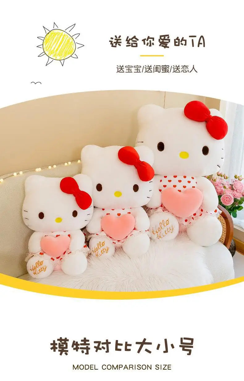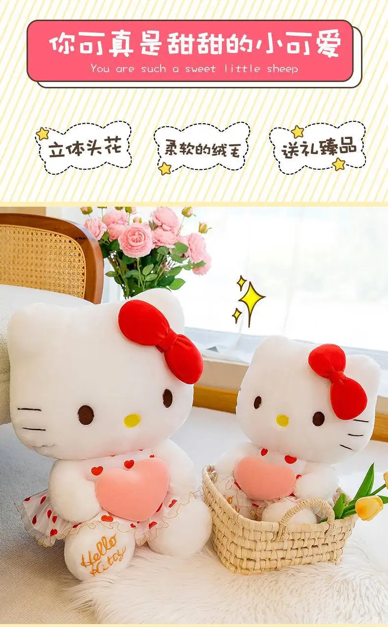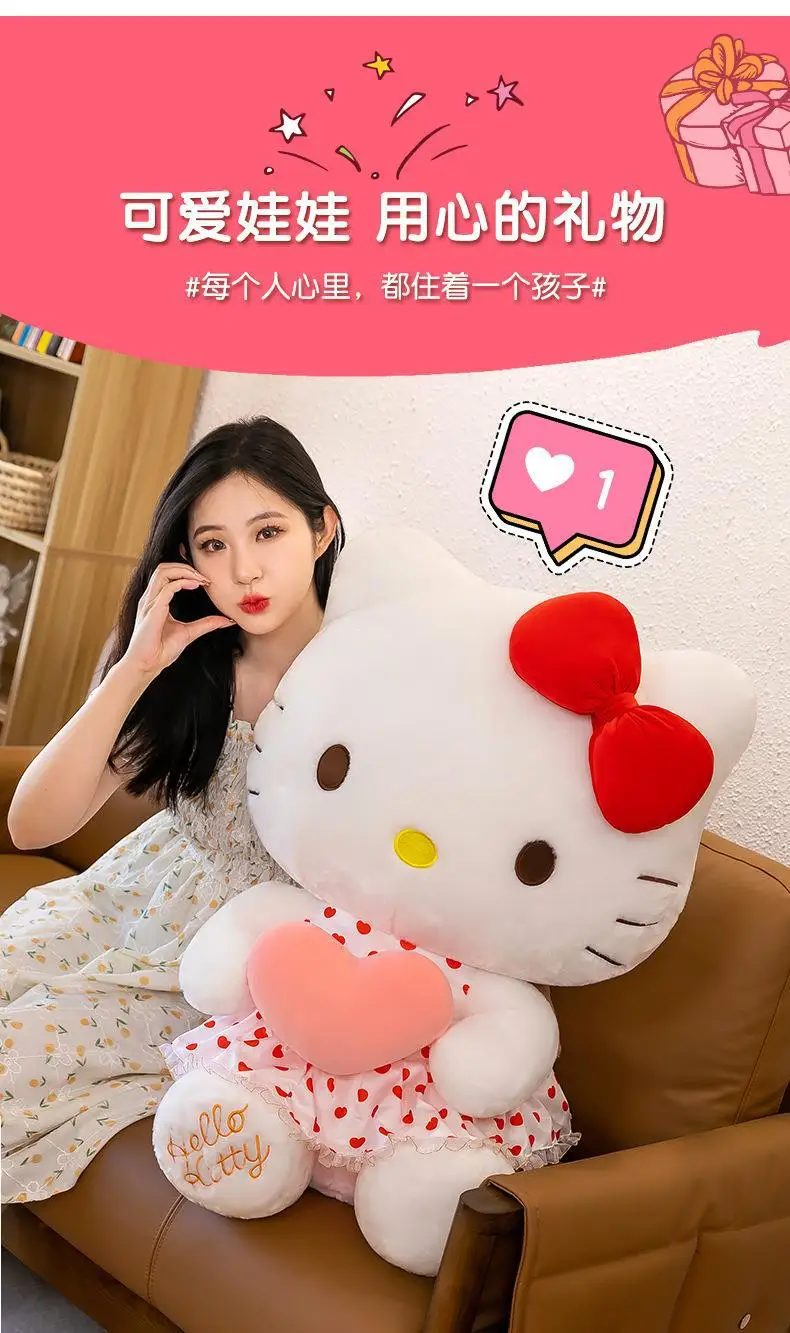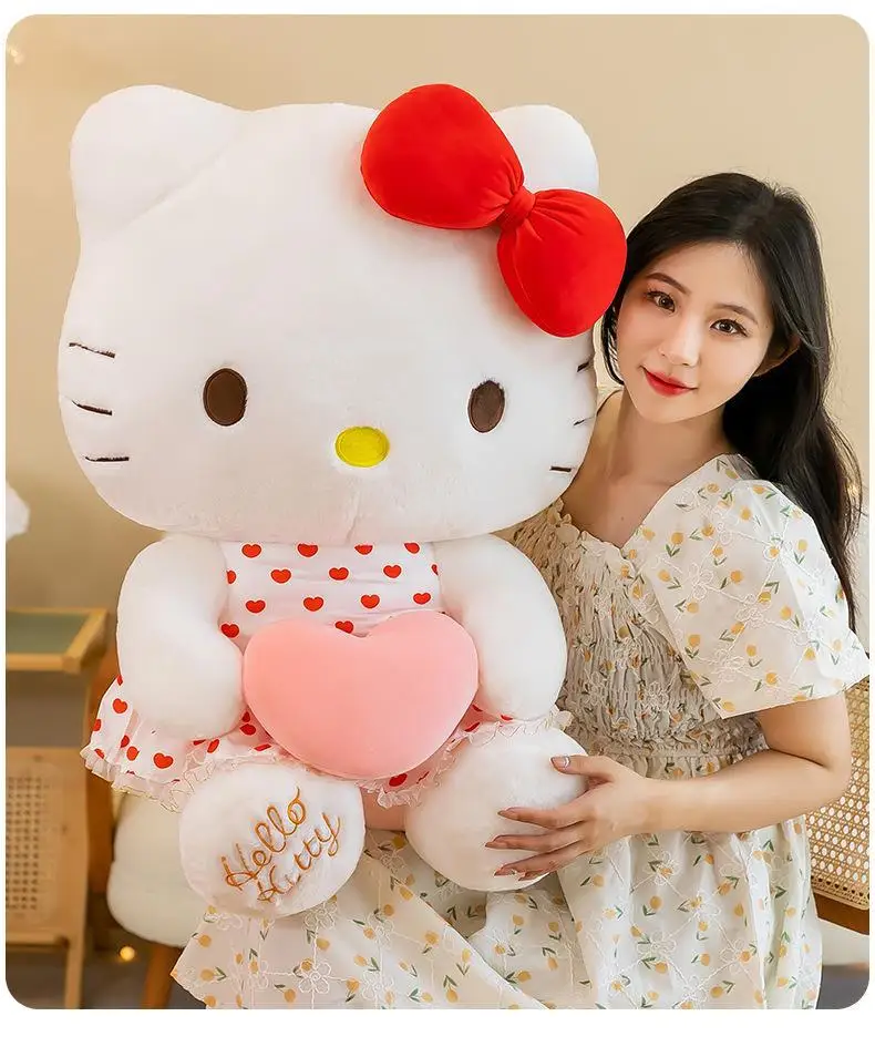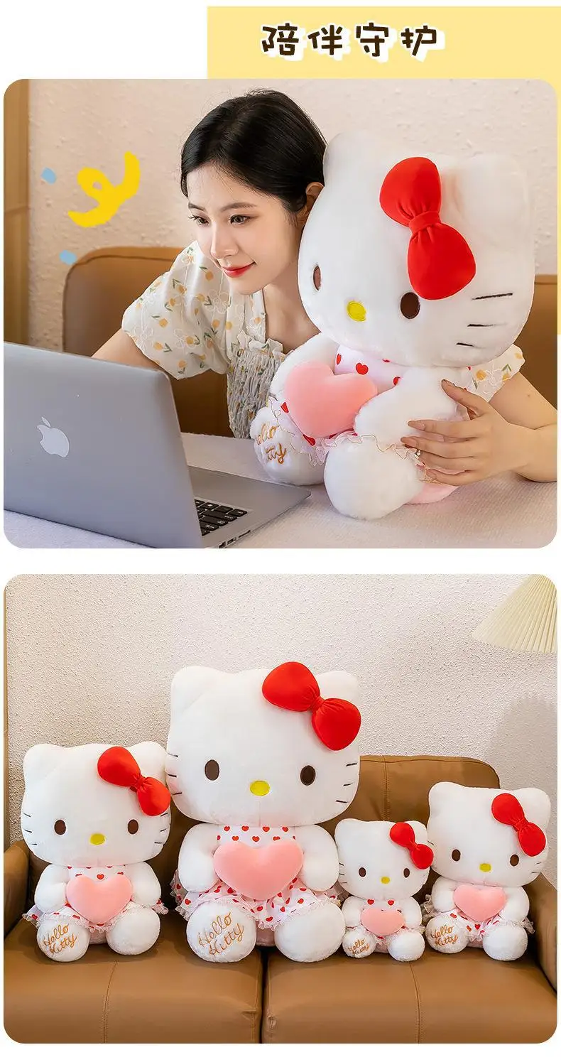 New Sanrio Cartoon Anime Sheer Dress Hello Kitty Plush Doll Big Cute Room Decora