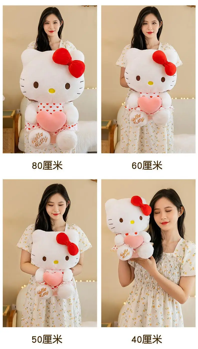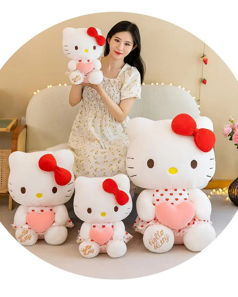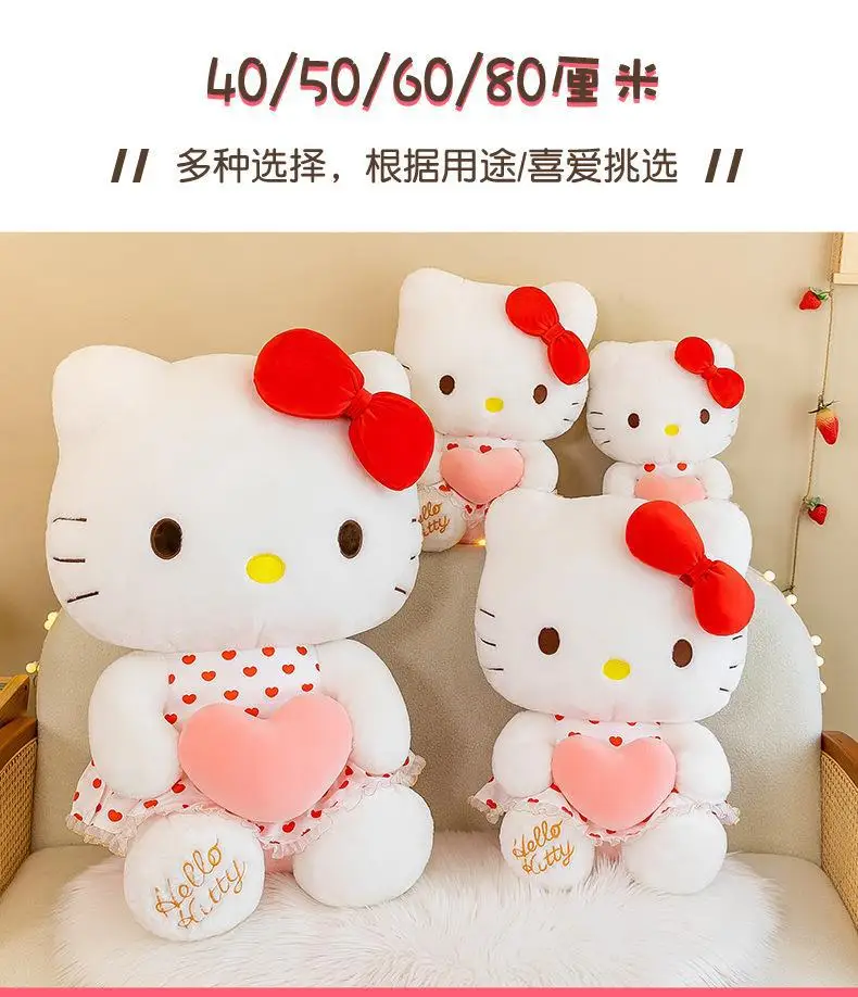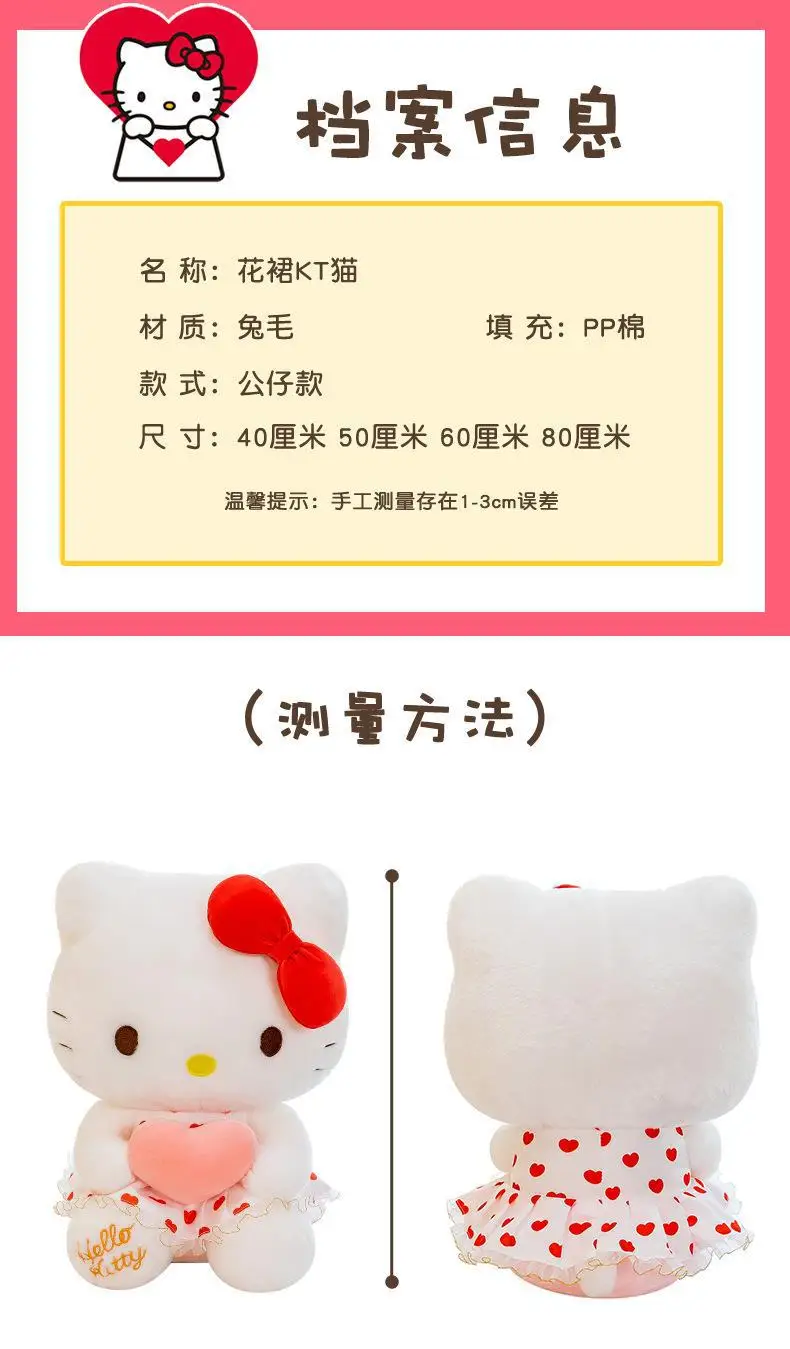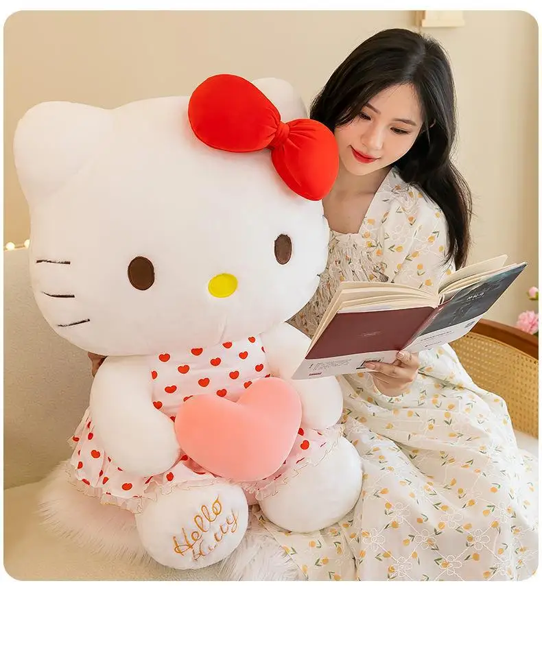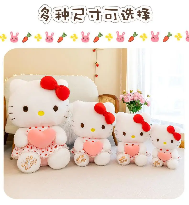 New Sanrio Cartoon Anime Sheer Dress Hello Kitty Plush Doll Big Cute Room Decora