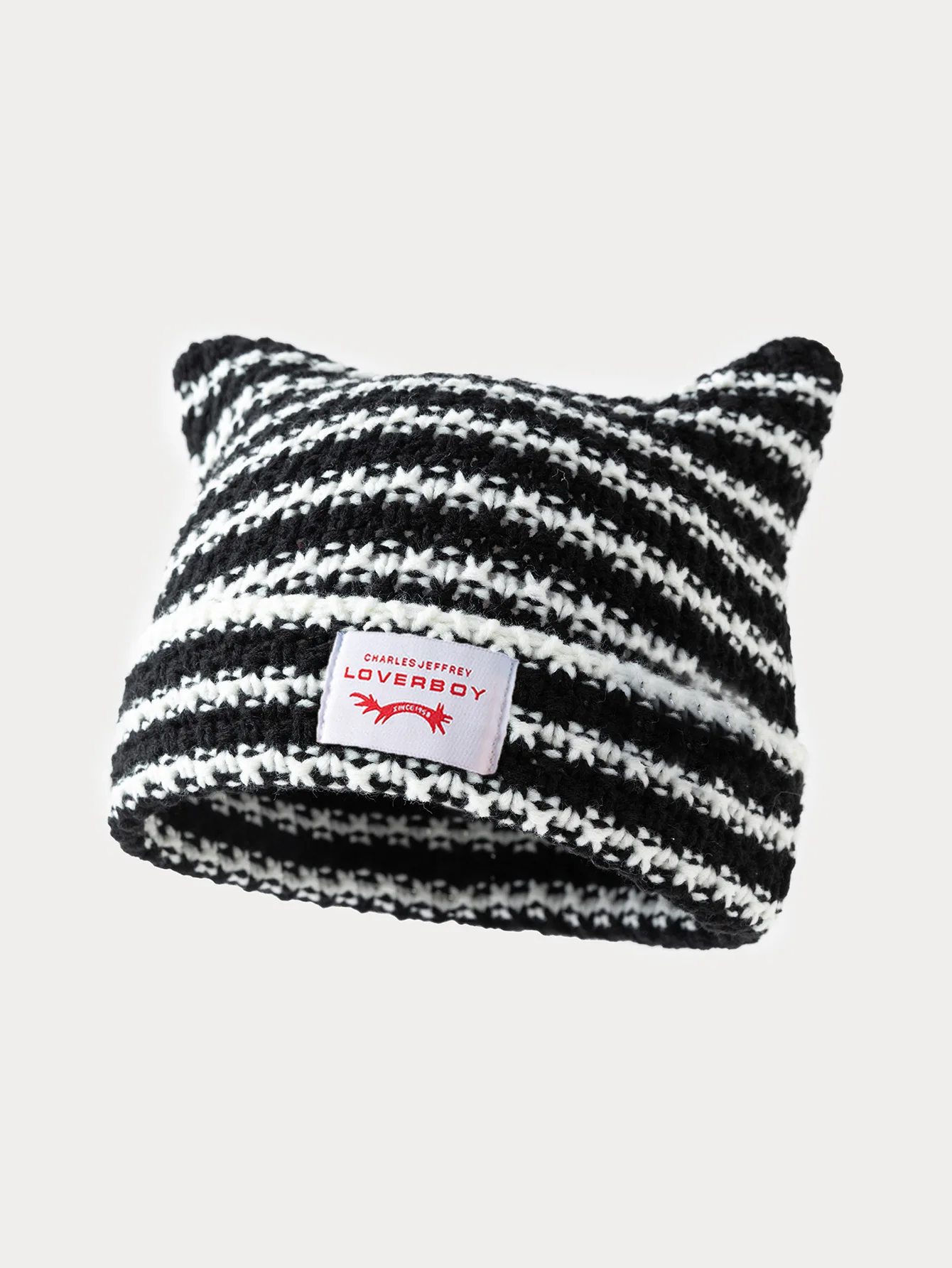 Y2K Handmade Stripe Knit Beanie Hat Cat Ears Cold Hat Winter Men Female Warm Cro